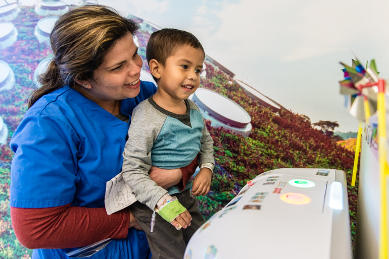 Rogelio Diaz-Ramirez, an adorable three-year-old, was in the hospital with a lung infection, but he couldn’t stop smiling at just the thought of seeing a robot for the first time.