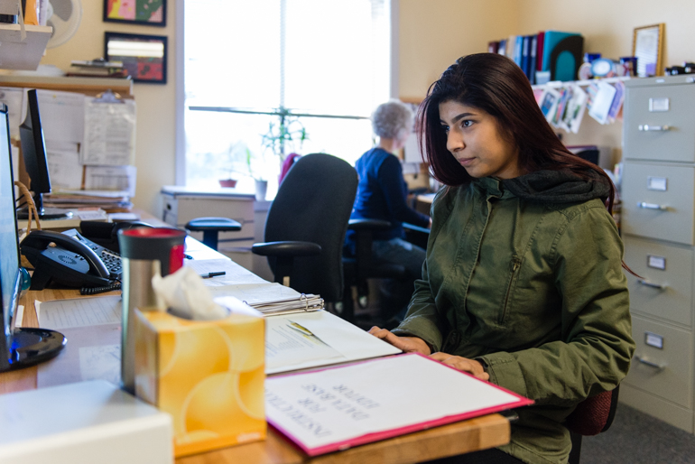 Gomarâs office in the Oakdale Family Support Network Resource Center is cluttered with open boxes of diapers and donated childrenâs toys and clothing.