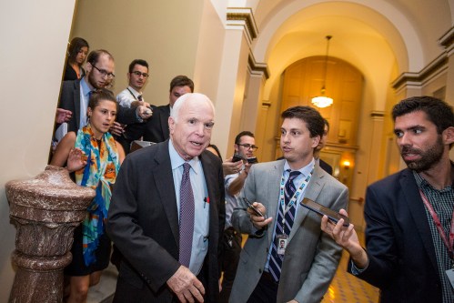 Senate Majority Leader Mitch McConnell (R-Ky.) on the health care bill until Sen. John McCain (R-Ariz.) returns from surgery for brain cancer.