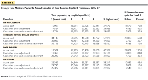 Success in reducing the disparity in payment rates among hospitals could depend on just how much bundling is done. Miller鈥檚 study found that the greatest factor affecting payment difference among hospitals was post-discharge care. With hip replacement, for example, post-surgery care accounted for 85 percent of the cost difference among hospitals. Medicare鈥檚 bundled payment demonstration project includes post-discharge care as an option, but it鈥檚 not a requirement for all those participating.