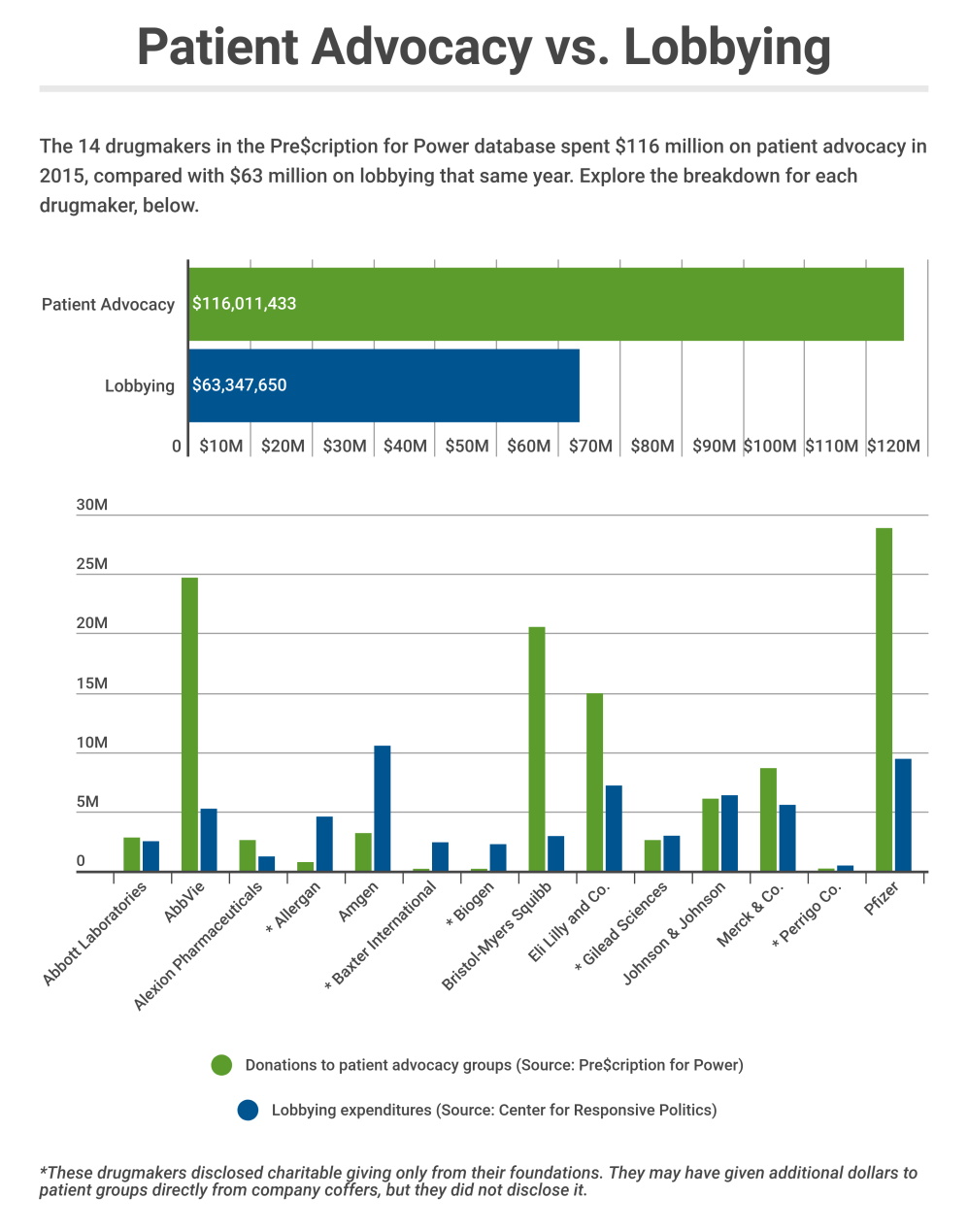 The database will grow to include new disclosures. Not all drugmakers are willing to disclose their company giving. Eleven of the 20 companies examined — , , , , , , , , , and — declined to disclose their company giving or did not respond to repeated calls.